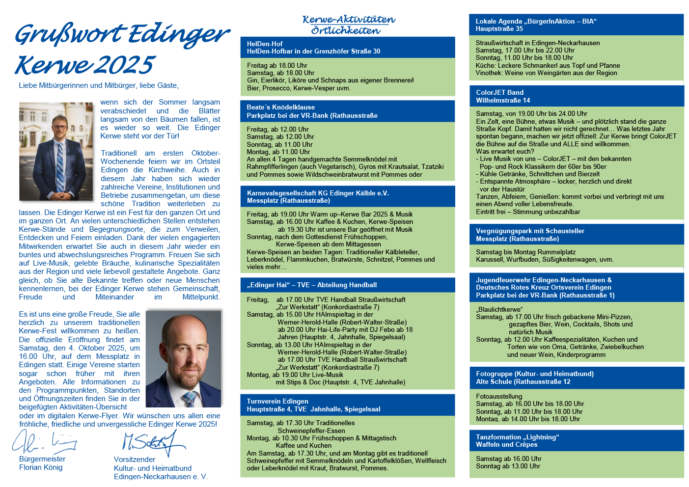 Kirchweih in Edingen am 1. Sonntag im Oktober (Samstag bis Montag)